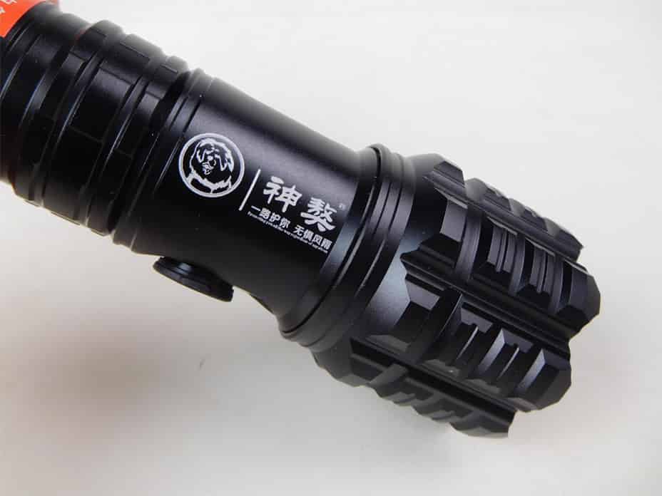 神獒战术手电整体构造很实用,头部采用一体化攻击头,外出使用可以用于防身。中部带有电量显示,手电开关按键。尾部有手绳孔。手握处带有三大处防滑设计,看起来利落大方。