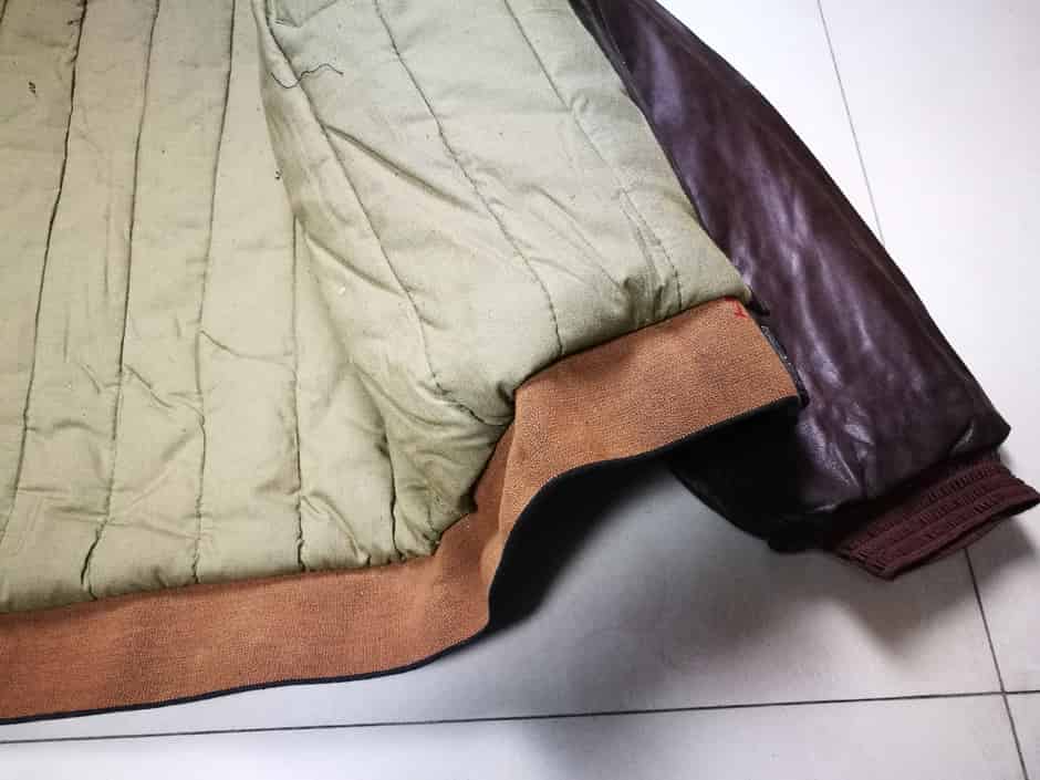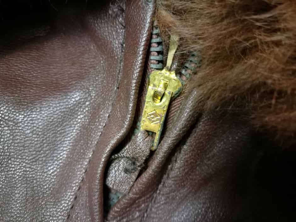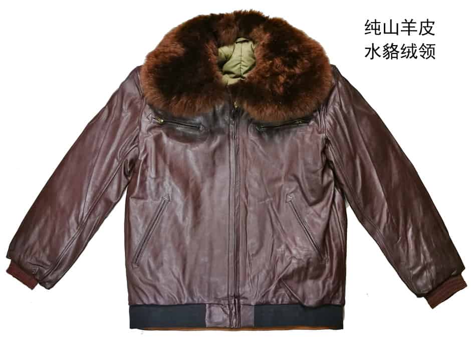 本件衣服由际华3512工厂在80年代制造,那个时候的皮子质量很好。衣服虽然库存了一些年,但却崭新如初。纯铜拉链牙齿已经有绿绣,但一点儿也不影响使用,还是很顺滑。天然的水貉绒动物毛领,柔软舒适,红褐色的颜色,非常特别。一看就是好东西。穿上这个皮袄拉风的很,有人看了想买还没地方买去。