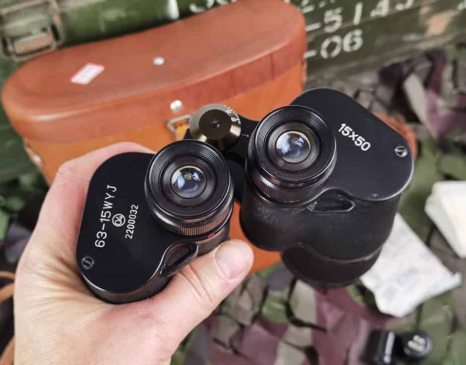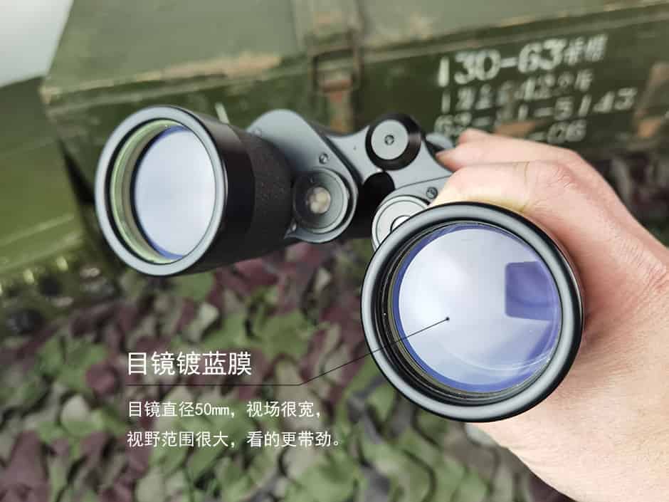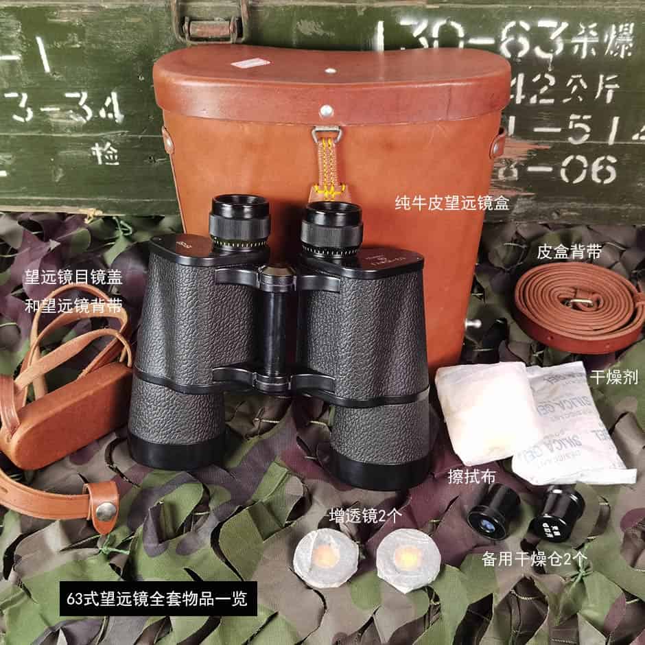 63式望远镜是我国于1963年定型的一款军规望远镜,主要用于团级指挥部使用。其特点是焦距15倍,观察距离较远。是手持军规望远镜中焦距较大的一款双筒望远镜。物镜口径50毫米,视场宽阔,视野大。