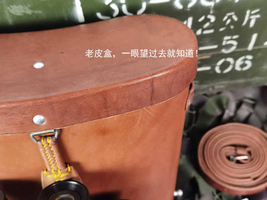 市面上许多望远镜的盒子号称是牛皮的,实际不是纯牛皮,是后来加工的再生牛皮。而这款63式望远镜的皮盒是天然牛皮,且是老货。品质非常好,材质好,厚实,而且很轻。光一个皮盒就很值钱。
