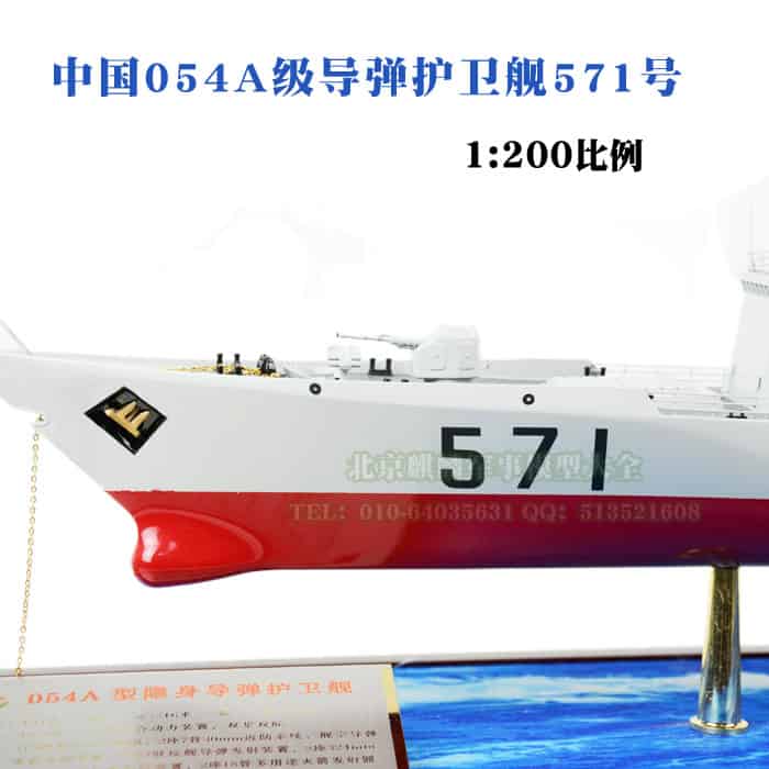 军舰种类 级别 弦号 交货时间 中国海军 导弹驱逐舰模型系列: (1:200比例、 1:350比例) 051B型 167深圳号导弹驱逐舰 1~3日 052型 112哈尔滨号、113青岛号号导弹驱逐舰 1~3日 052B型 168广州号、169武汉号导弹驱逐舰 1~3日 052C型 150长春号,151郑州号、152济南号、153西安号、170兰州号、171海口号 1~3日 052D型 172昆明号、173长沙号 1~3日 俄现代级956型 136、137福州号 1~3日 俄现代级956E型 138泰州号 1~3日 052C型 171号导弹驱逐舰 1~3日 中国海军 导弹护卫舰模型系列: (1:200比例) 054型 525马鞍山号、526号温州号; 1~3日 054A 530徐州号、529舟山号570黄山号、568衡阳号、571运城号、569玉林号、548益阳号、549常州号、538烟台号、546盐城号、572号衡水号、573柳州号、547临沂号、575岳阳号、550潍坊号、574邵阳号、576三门峡号; 1~3日 056轻型 582蚌埠舰、596惠州舰、584、580、583上饶舰、597钦州舰、585、581