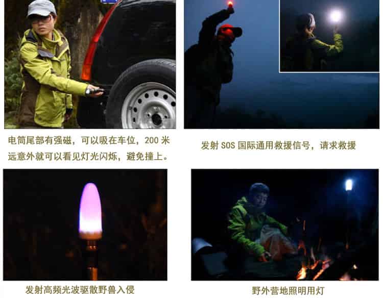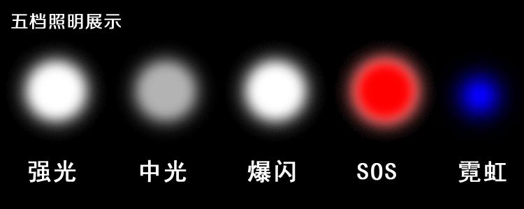 当我们需要超亮照明时,可以选择强光档;当我们需要近距离柔和光线时,可以选择弱光;当我们遇到危险时,可以用暴闪来进行威慑;迷路、脱群而需要救援时,选择发射国际通用的SOS救援信号,告诉搜救队伍。