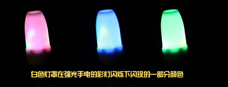 除了手电外,还为大家配备了2种颜色的塑料灯罩,一个为红色,一个是白色。夜晚,可以将白色罩子罩在电筒头部,就变成了一个帐篷灯。罩上红色罩子,就变成了一个路标,或者警示信号。