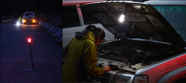 夜晚,在我们驾车行驶途中,车辆坏在马路上,即使您有三角反光牌,也不如在100米外立一把能发光、闪光的红色警示灯来的安全。