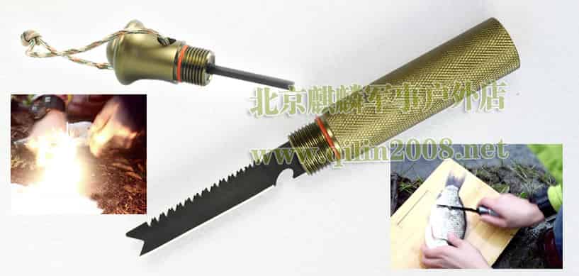 户外生存离不开刀,除了它可以在危险的时候自卫外,许多地方都离不开它,具体能干什么,大家比我更会玩,我就不多说了。藏獒铲上配的小刀不仅是刀,因为刀背是采用双排锯齿设计,所以它更能作为锯条使用,刀尖采用V型设计,用途更广泛。