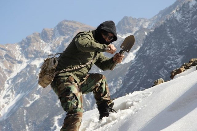 第五代藏獒铲的一节配备了一个尖尖的东西,说是冰镐,其实只说了它的一种用途,它可以作为一个登山杖的尖部,不会打滑,也可以用它来捕鱼等,总之,各人有个人的招数,呵呵!