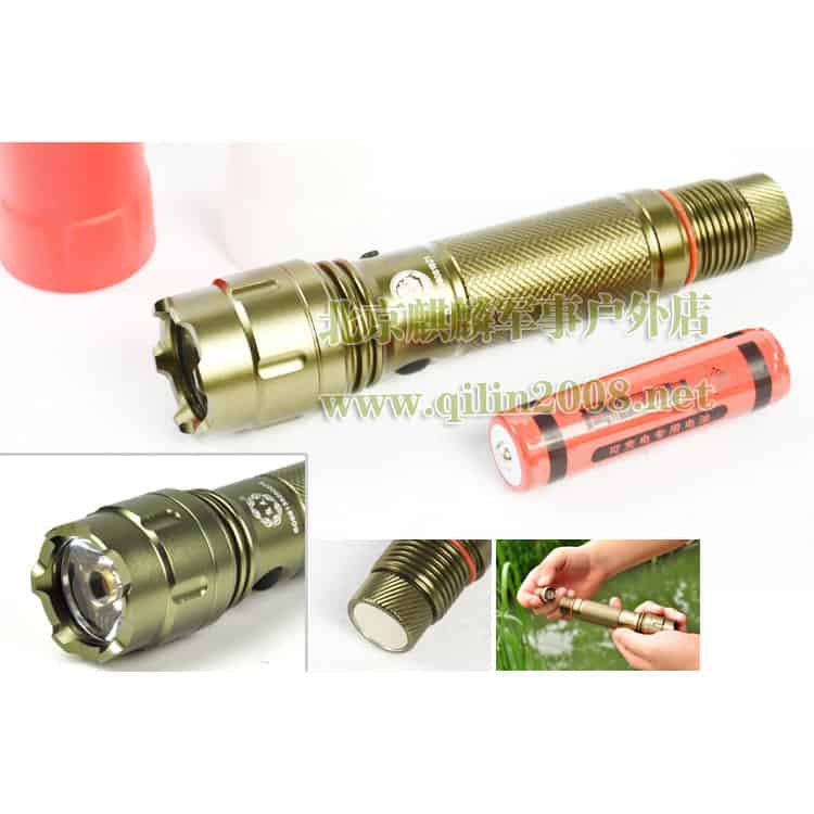 另外,强光手电的尾部是一块高磁性的磁铁,可以吸附在任何铁器上,比如,车辆的机器盖子上,便于我们检查车辆。
