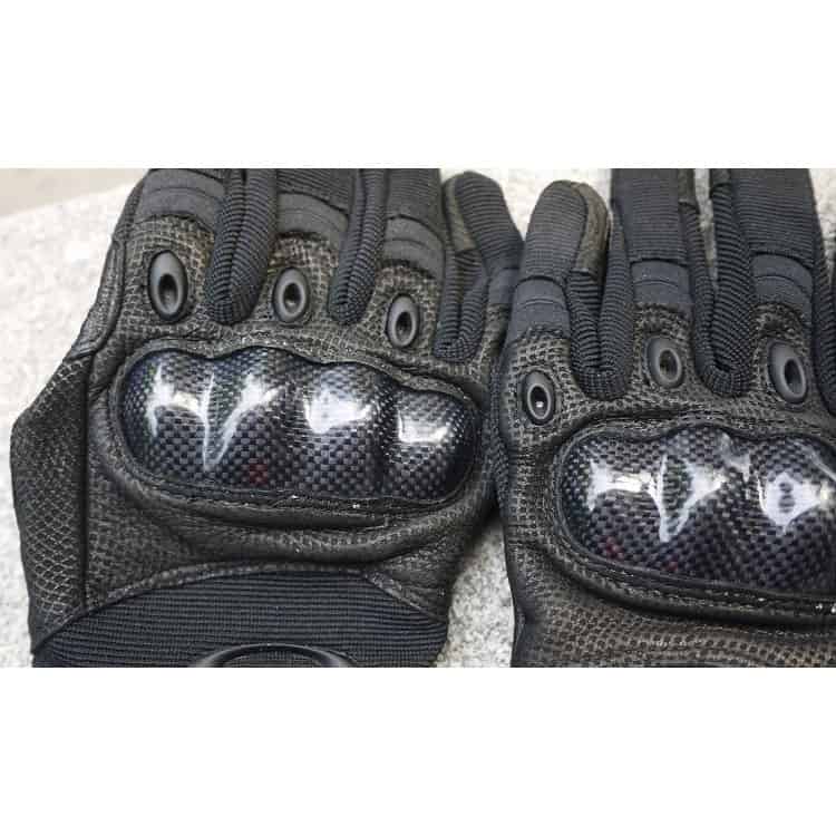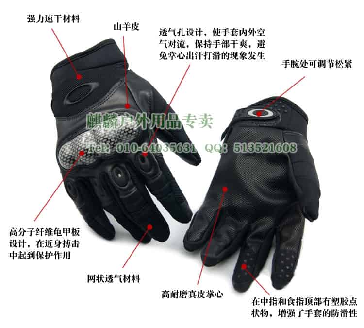 做工精细,碳纤周围和手掌是真皮的,手指内朝向手掌侧是polyster吸汗材料,手指内侧为网面通风,手掌材质为防弹纤维,耐刀割,抗磨损,碳纤部分有相当强度,但又不是死硬的,可以提供很好的保护作用。手背有四个突起 符合人体学设计原理 穿着更舒适,手背上有四个橡胶点 能更好的保护手部,掌部加入了更多防滑材料 手指和中指的设计为塑胶点状物,手腕外侧有松紧网状物 保护腕部不受伤害 另配有魔术贴带 可适当调节松紧现在美军很多士兵正在使用这副手套。