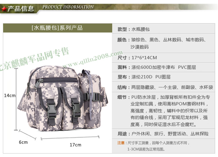 首页 > > 03型小水壶腰包,休闲腰包,多功能腰包,户外出游腰包,五色可选
