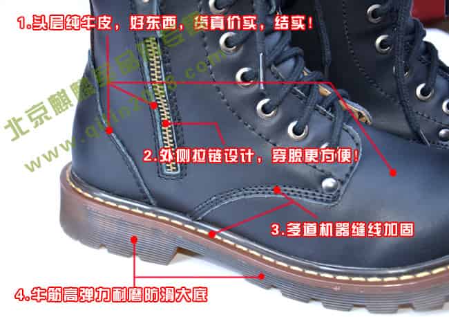 2、凡在三个月内出现开胶、钉脚不平、帮底断线、掉浆、泛硝质量问题包修。北京麒麟军品网承担将靴子修好之后寄回的快递费用。
