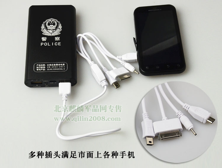 应急移动电源,12000毫安,配有多种插头,能够满足市面上各种手机,并带有手电功能