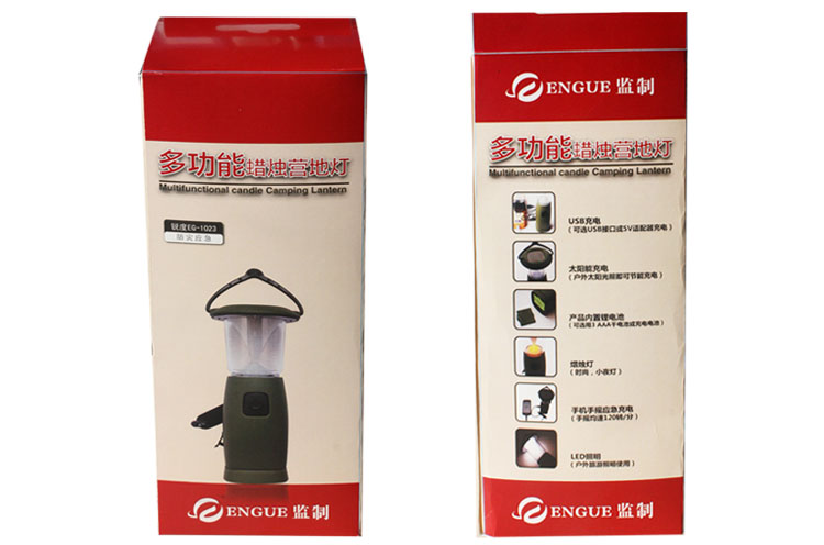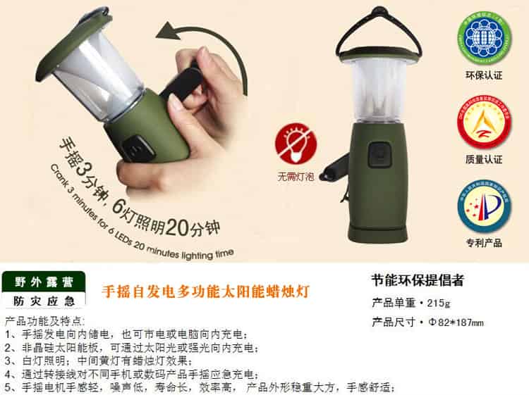产品(锐度 EG-1023)带有太阳能充电器,可手机应急充电功能,外部5V电流电源对内部电池充电功能等。