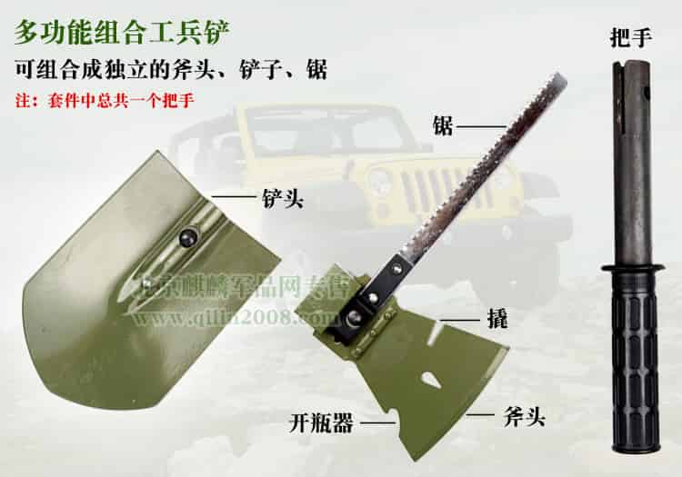 组合锹,组合铲,三件套,可以挖、砍、锯,可灵活拆卸组合的户外生存工具!