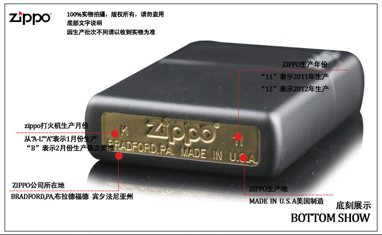 ★ZIPPO打火机近百年历史,它不仅成为烟神们钟爱的武器、成为人类野外生存使用的宝贝,ZIPPO更成为一种品位与个性展现的标志器件,它与时尚和潮流同步。男人离不开,女人也不讨厌。