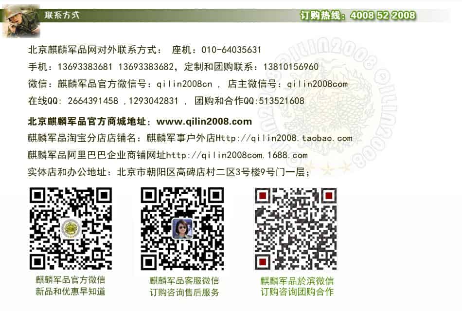 北京麒麟军品网为正规军品店,有自己的实体店铺,有企业营业执照,诚信可靠,请放心购买。您的信任必将换来一次愉快的购物体验!!!