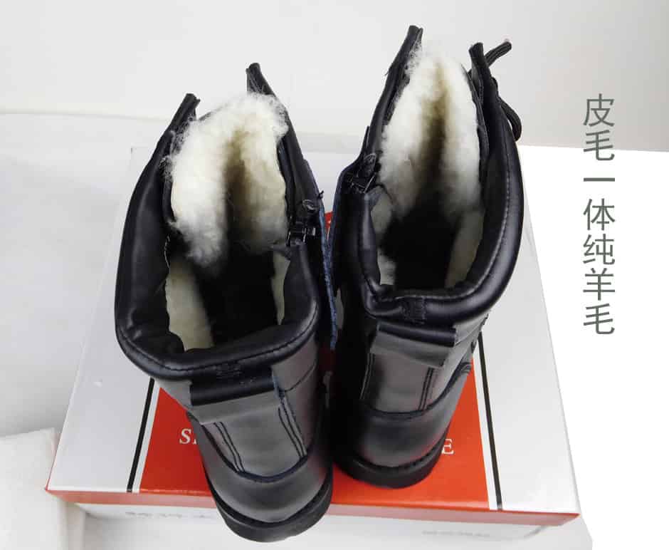 【主要材质】 头层纯牛皮+皮毛一体羊绒+双密度凯夫拉橡胶鞋底