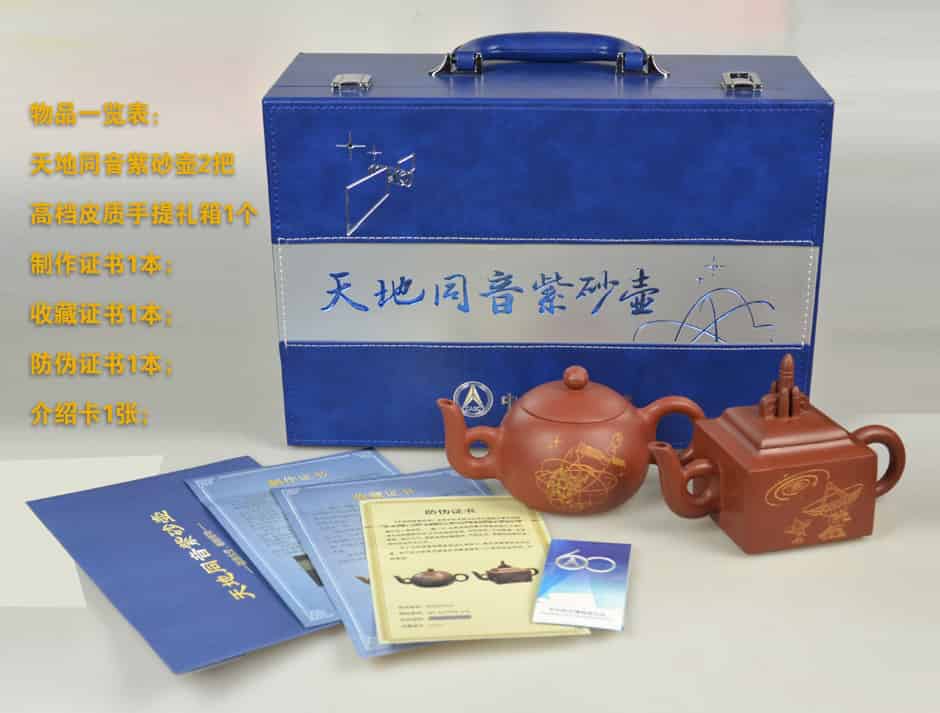 天地同音紫砂壶又称中华航天紫砂壶和天圆地方紫砂壶,是中华航天六十周年唯一授权的紫砂类特许产品。本次中华航天博物馆仅授权制造2016套,数量非常稀少,余下已经不多,藏家请尽快给我们打电话。