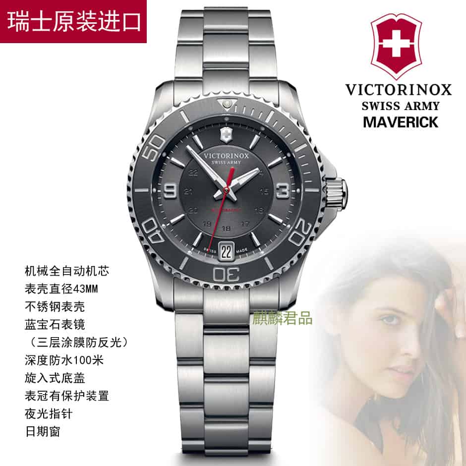 进口瑞士军表,特工MAVERICK系列维氏瑞士军表,女式机械款,黑盘241708型银钢表带,正宗瑞士军表