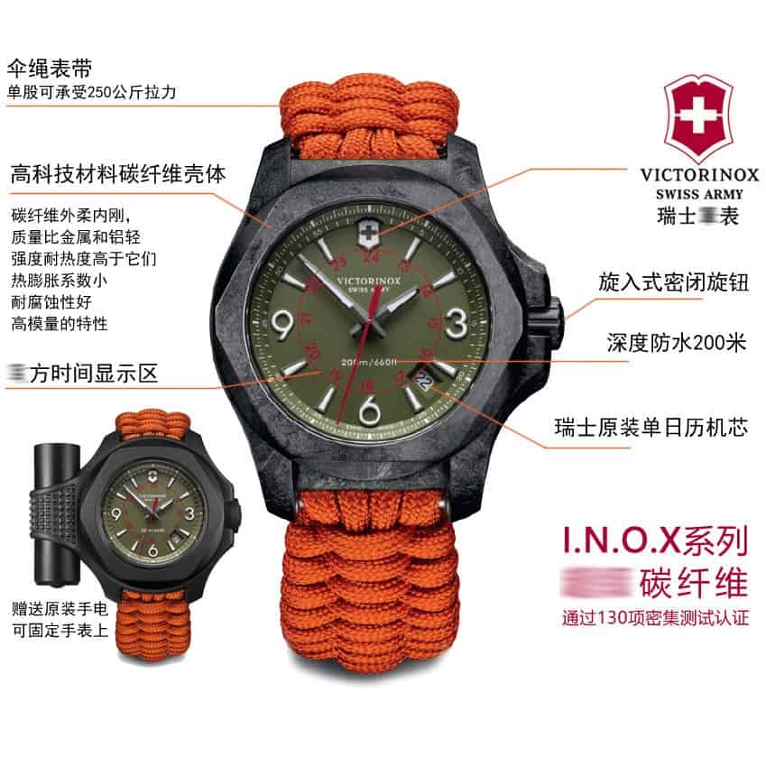 本款表一大特点就是结实,瑞士维氏集团耗费钱和时间,对I.N.O.X精钢系列君表进行了多达130项以上实验,分别有:64吨坦克碾压实验、零上71℃高温使用、零下57℃寒环境使用、全自动洗衣机2小时90℃洗浴、海拔21300米高海拔测试、10米高度自由跌落测试等等。瑞士维氏集团Victorinox AG对待这块手表在研发、制造、实验等环节上拿出了沿袭100多年的制造瑞士君刀的严格标准,目的只有一个,就是让它和大家熟知的瑞士君刀一样,结实、皮实、耐用、不爱坏,让你放心大胆的去糟蹋它。