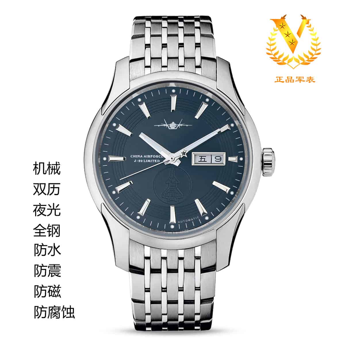 品名 | 歼20纪念机械表 | 机芯类别 | 进口机械全自动双日历 |
