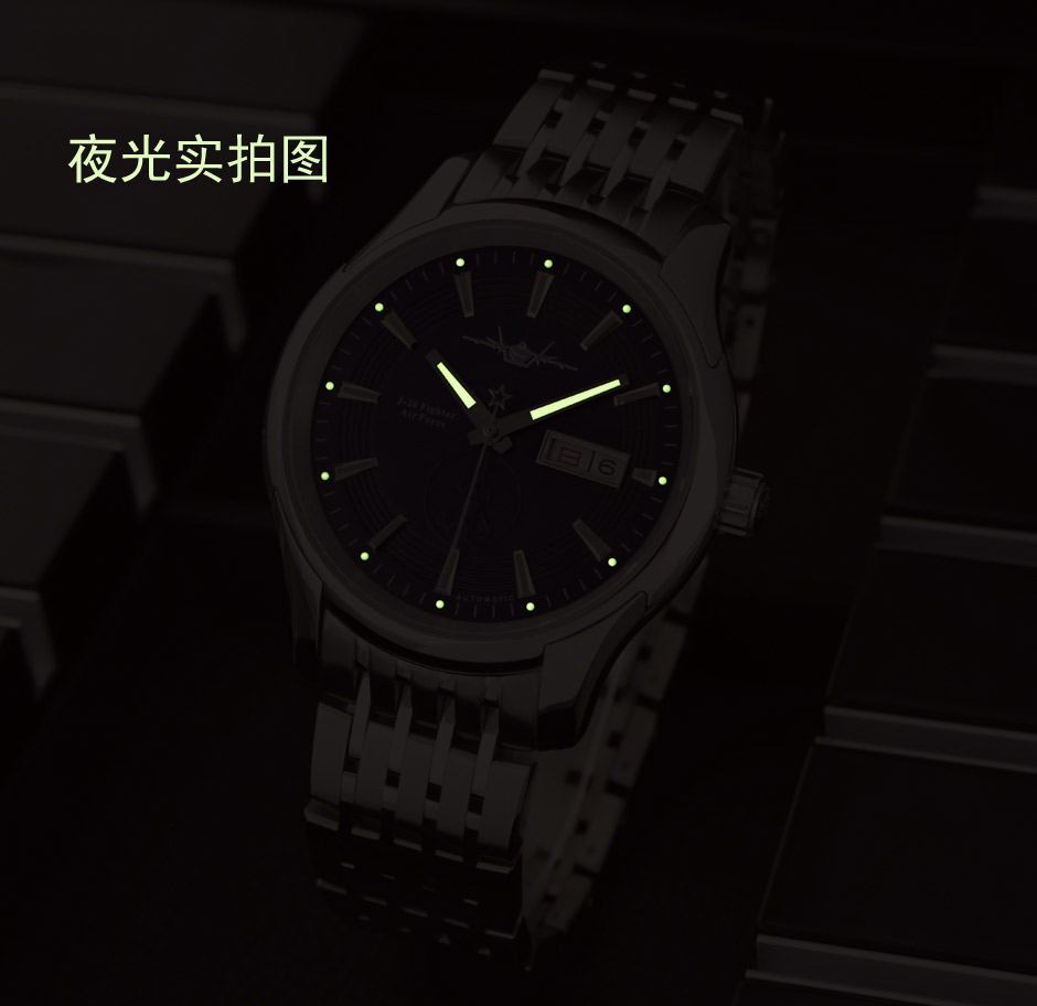 因为歼20机械表从材质、工艺、机芯选配等方面选用较好的配置,所以,歼20机械表具有很好的“三防”功能,即:防水、防震、防腐蚀的特点。给您在佩戴的时候,增加了更多的安全系数,让您戴的更加舒心。