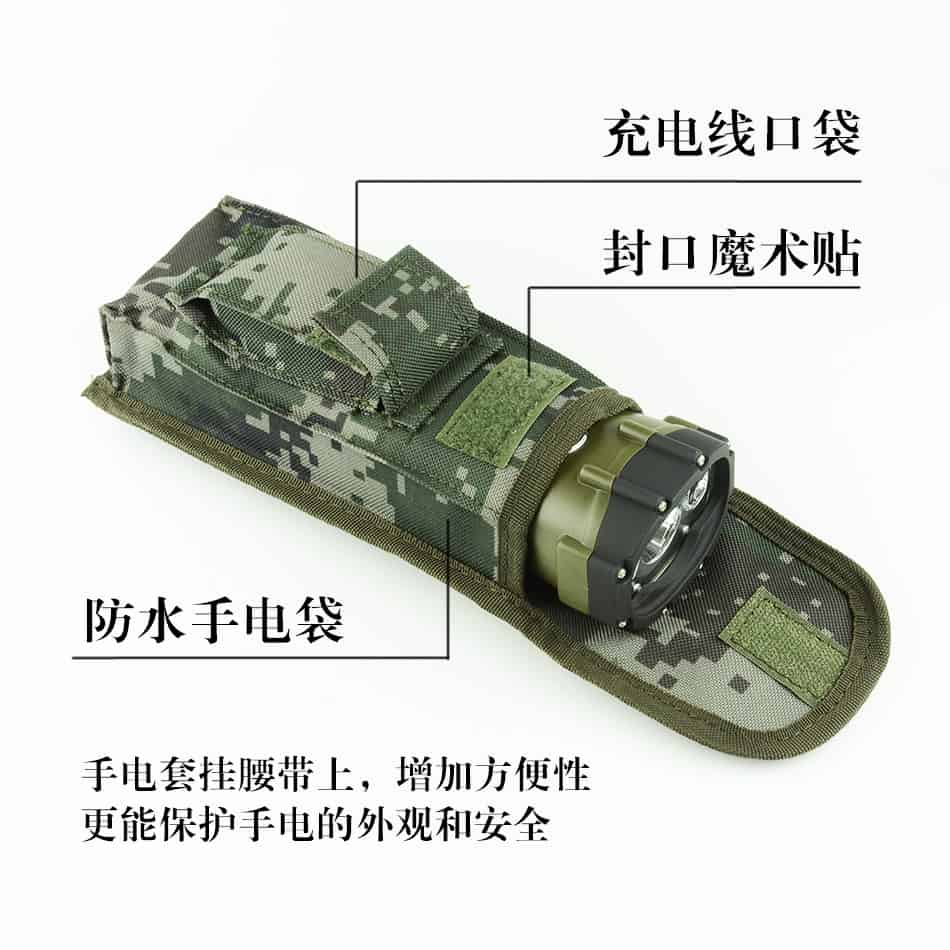 购买手电赠送专用便携包1个,常用充电器插头若干。手电有2种颜色,分别为黑色和军绿色,买家可自选。