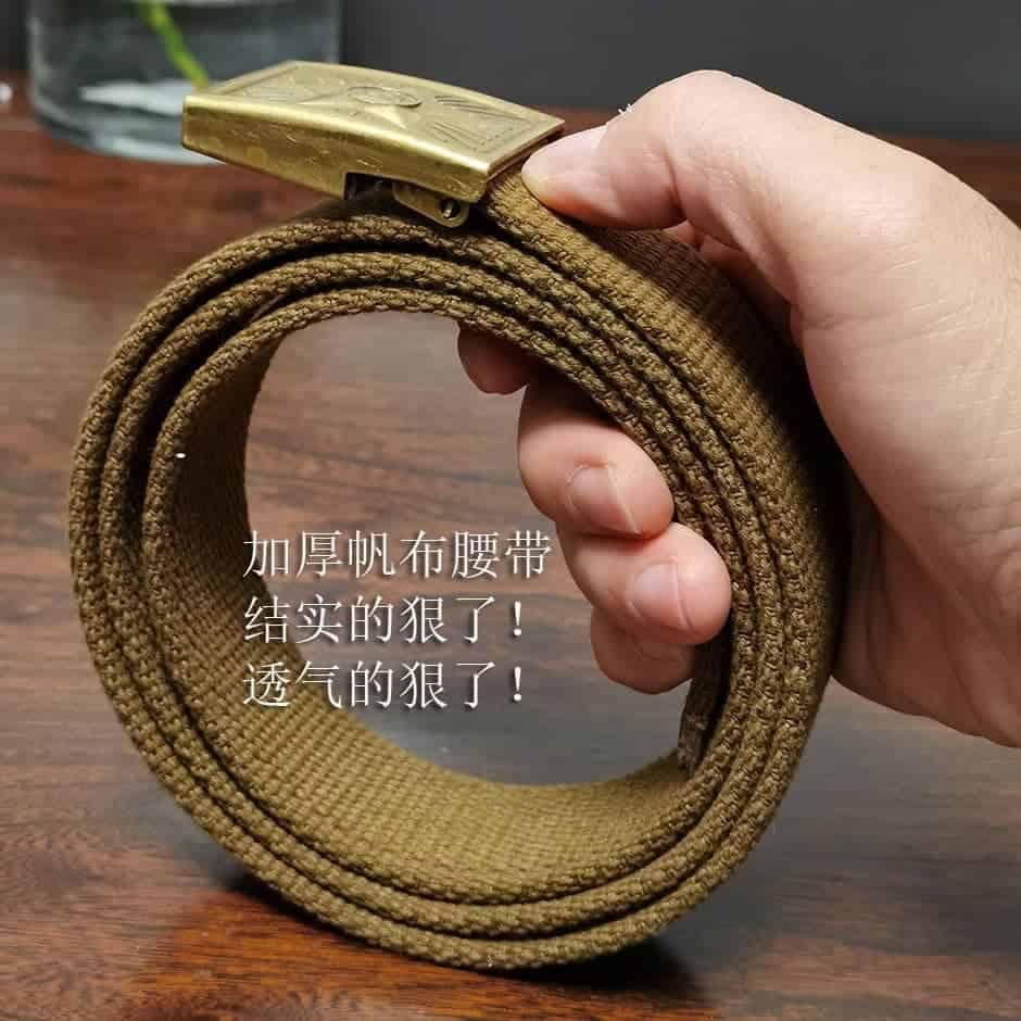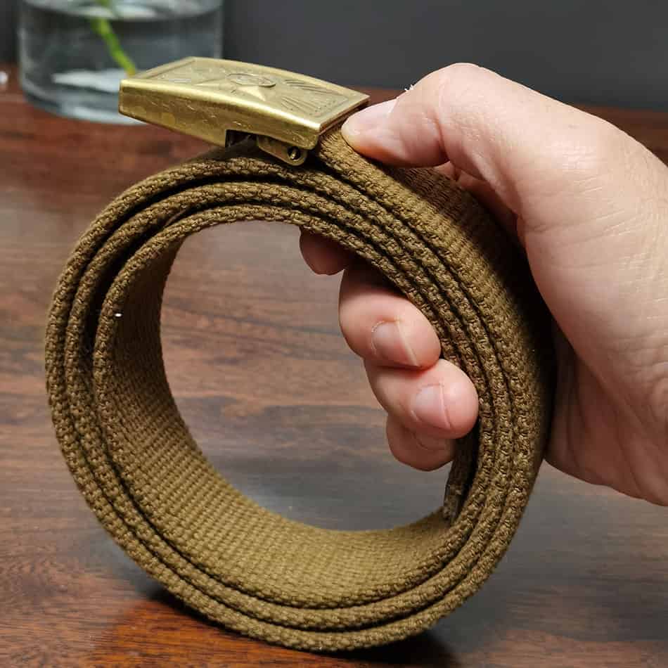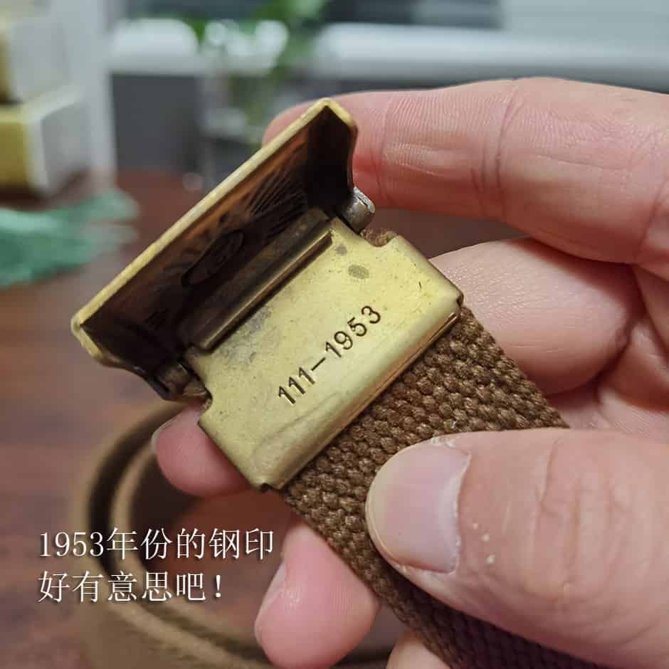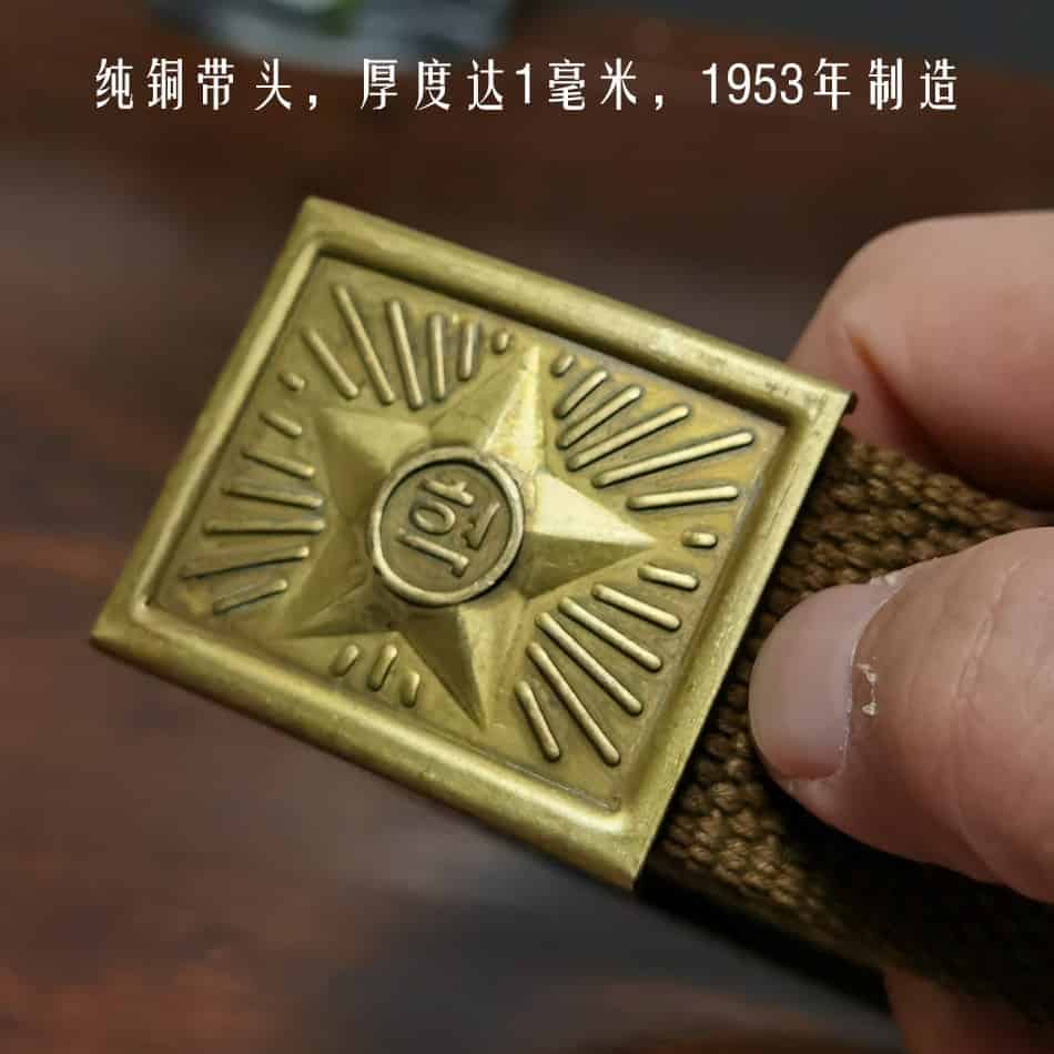 1953年支援朝鲜腰带,纯铜头加厚帆布带。