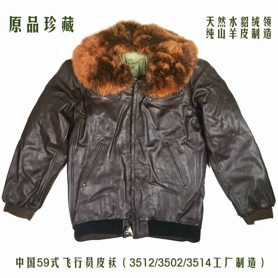 3512厂59冬飞皮袄皮裤套装,火红水貂绒领,59冬飞,59式飞行员皮夹克 副4号