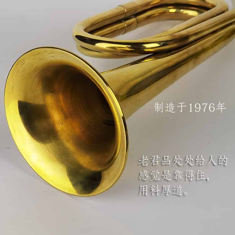 本店展示的大步号和小步号均为原装正品,制造于197几年,由国营相关工厂制造。大步号和小步号具有很好的收藏价值。老货做工很好,铜管用料厚实,细节处理很精致。后来制造的物品没法和那会儿比较。店主为了精心比较,特意在网上买了一把几十元的小号和我们自己的老货进行比较,照片如下: