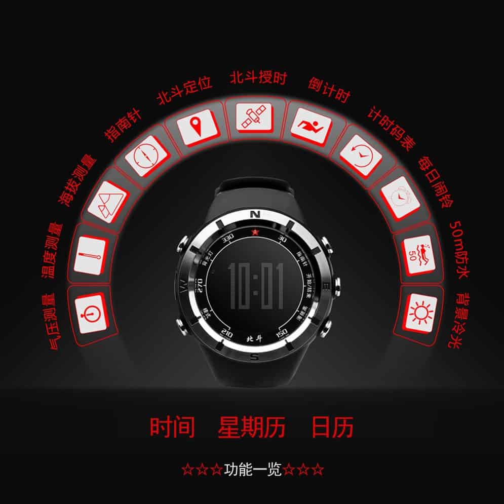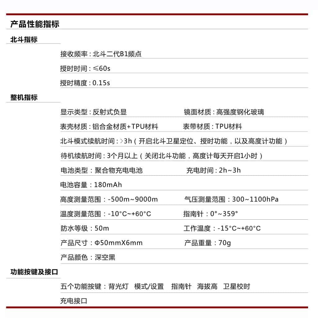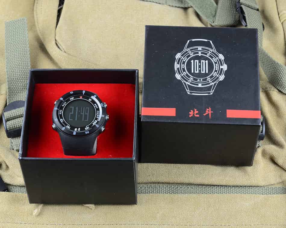 北斗智能腕表是基于北斗卫星导航定位系统研制、开发的一款具备北斗卫星授时及定位功能的可穿戴设备。本款腕表内部集成国产北斗芯片,实现北斗授时、定位,本款腕表还具备高度计、指南针、气压计、温度计、跑表、倒计时、闹钟、等功能,您在野外环境下配戴使用。