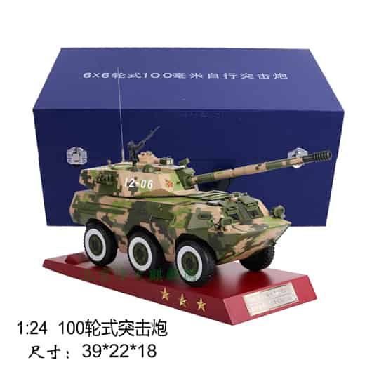 6×6轮式100毫米自行突击炮车1:24比例,火炮模型,展览摆件模型