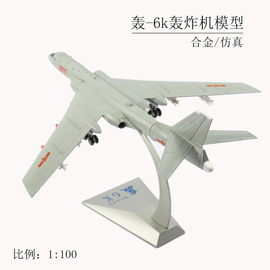 中国轰6K轰炸机1:100比例,金属飞机模型,展览摆件礼品