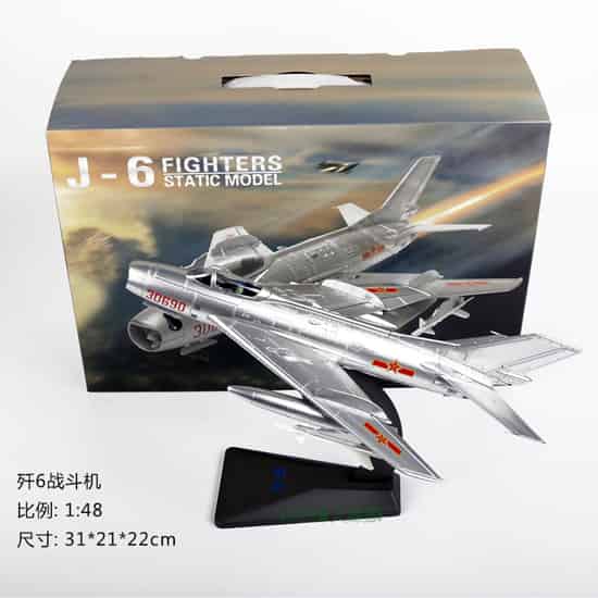 歼6战斗机模型1:48比例,合金仿真飞机模型,国防教育展览模型