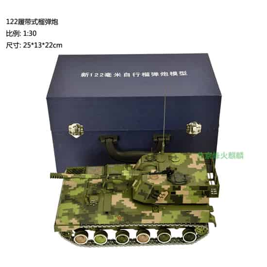 中国122毫米自行榴弹炮模型1:30比例,仿真合金装甲炮车模型,国防教育展览模型