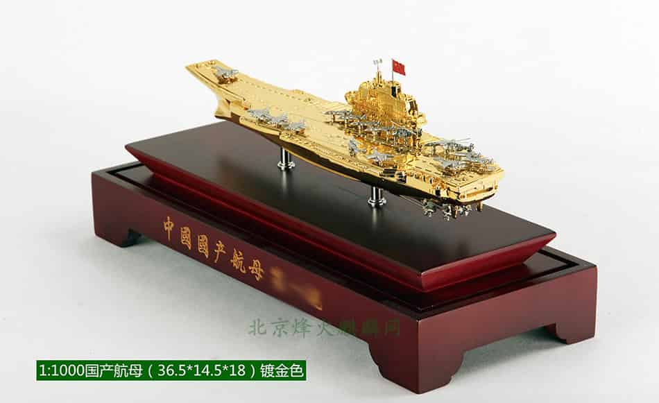 镀金国产航模山东号1:1000比例,航空母舰模型