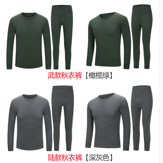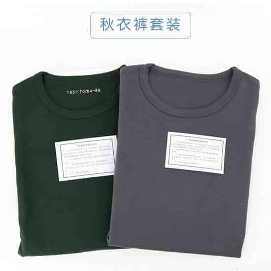 颜色有灰色和绿色两种颜色,两种颜色各分为普通薄款和加厚款。这款是普通款秋衣裤链接。尺码:共10个常规号165-170/84-88,165-170/92-96, 165-170/100, 175/84-88, 175/92-96, 175/100,175-104-108,180-185/92-96,180-185/100,180-185/104-108