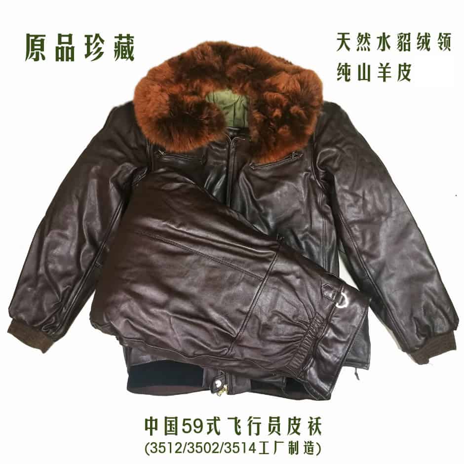 3512厂59冬飞皮袄皮裤套装,火红水貂绒领,59冬飞,59式飞行员皮夹克 副2号
