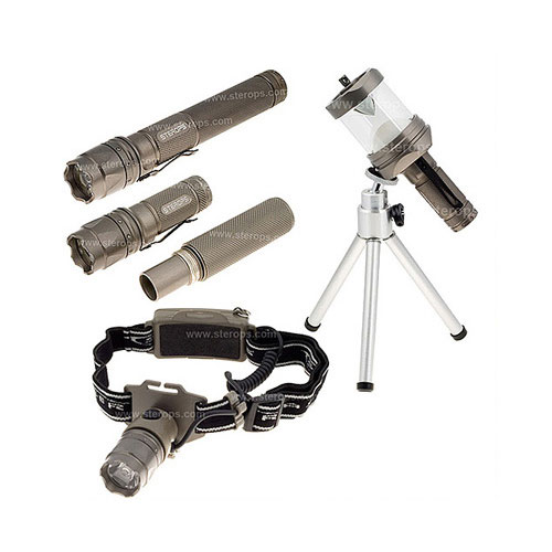 这是款专为野驴设计的户外照明装备,可以分别可以组装成4款产品,露营灯、头灯、使用1个CR123A电池的手电筒、使用2个AA电池的手电筒。
