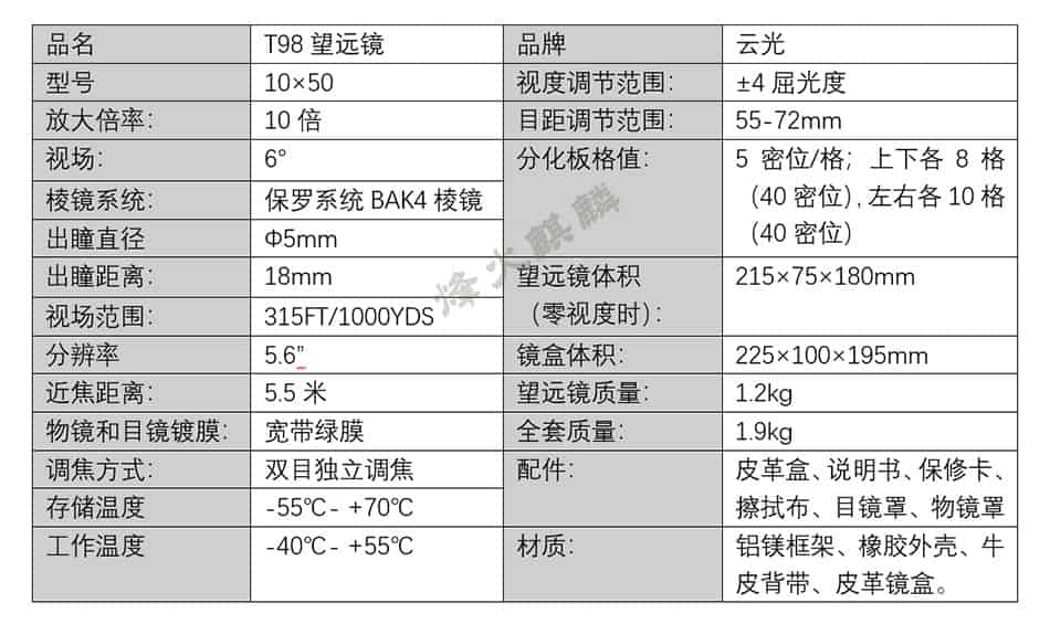 云光熊猫正品:T98式望远镜,10×50,高清测距双筒,远距离大广角。