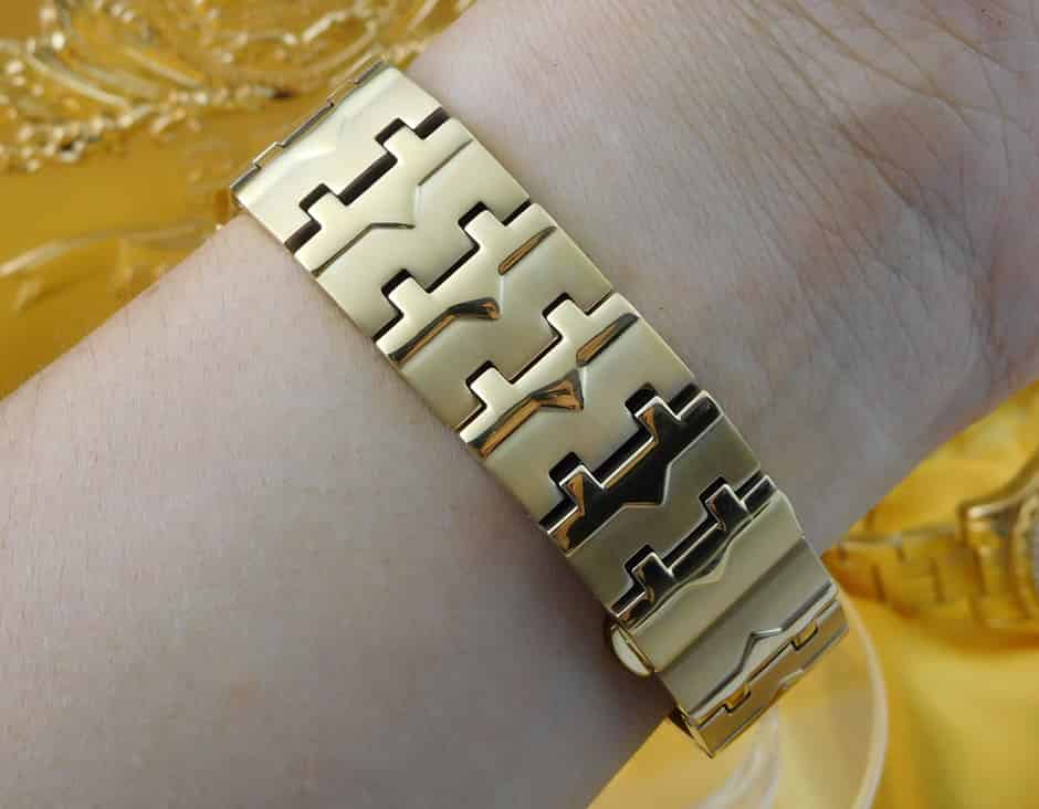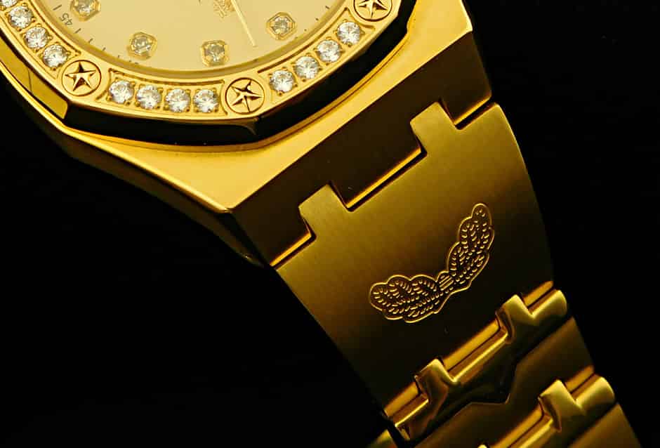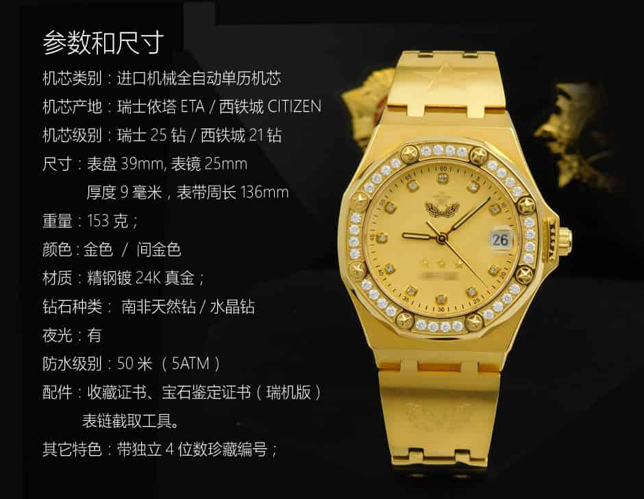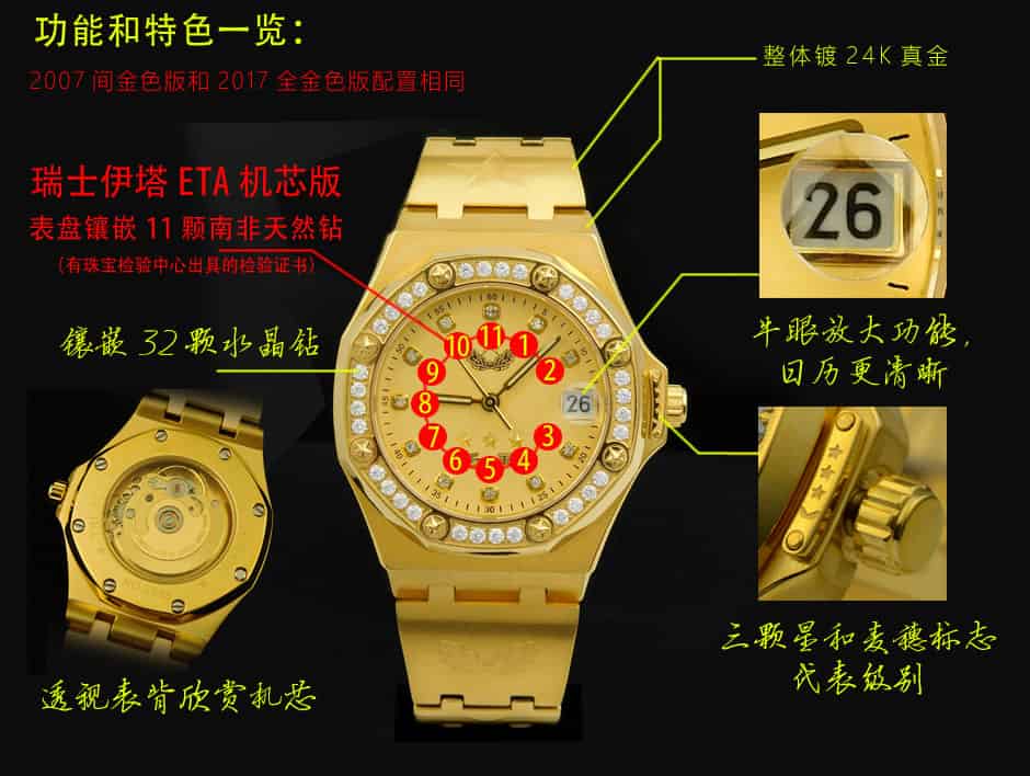 两种颜色的三星金钻表分别配置瑞士机芯和西铁城机芯,均为原装进口自动机械机芯。手表设计风格和理念既学习腕表的时尚造型,又融入了浓浓的jun旅风格。腕表多处有立体五角星、麦穗等形状,自然而然的凸显了本款手表彰显的风格和佩戴人的身份。