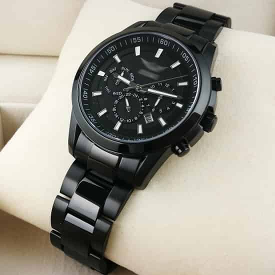 战神G-816型腕表的主体材质,即表带和表壳均选用不锈钢,不仅硬度高,而且不会腐蚀,银色表的外壳为不锈钢的本色,黑色表和金色表采用好的电镀工艺,不容易脱色,请佩戴的朋友放心戴。