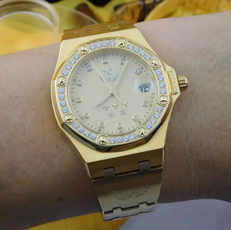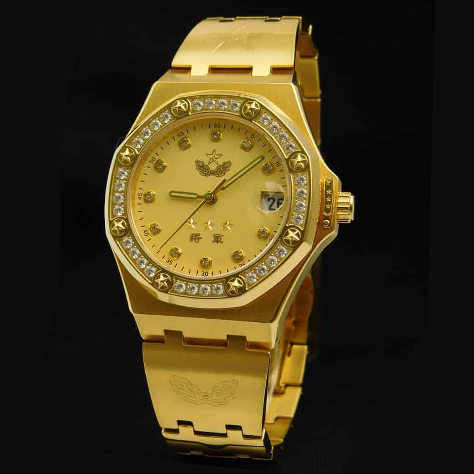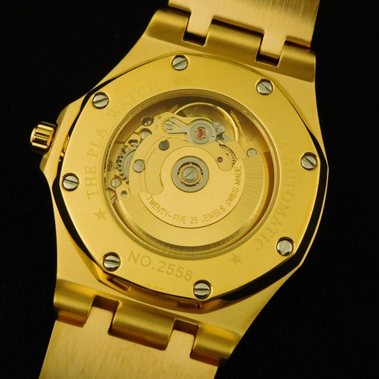 两种颜色的三星金钻表分别配置瑞士机芯和西铁城机芯,均为原装进口自动机械机芯。手表设计风格和理念既学习腕表的时尚造型,又融入了浓浓的jun旅风格。腕表多处有立体五角星、麦穗等形状,自然而然的凸显了本款手表彰显的风格和佩戴人的身份。