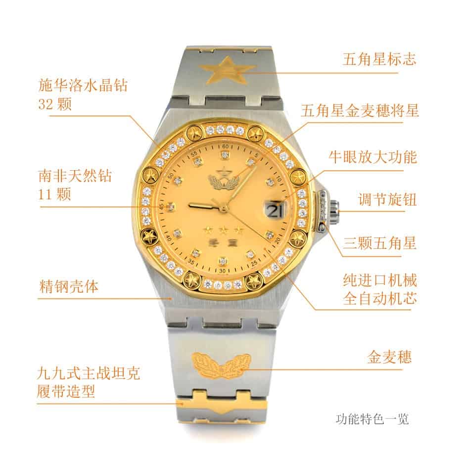 战神G809型金钻机械全自动腕表,镀金镶钻男表,纪念收藏手表,送礼好物! 西铁城21钻机芯