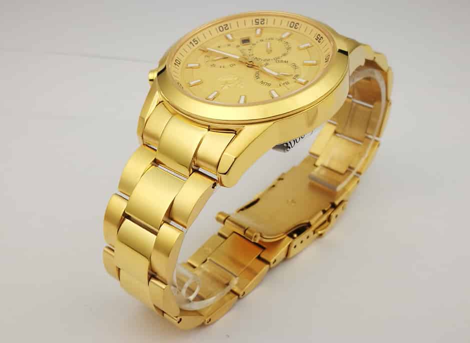 战神G-816型腕表的主体材质,即表带和表壳均选用不锈钢,不仅硬度高,而且不会腐蚀,银色表的外壳为不锈钢的本色,黑色表和金色表采用好的电镀工艺,不容易脱色,请佩戴的朋友放心戴。