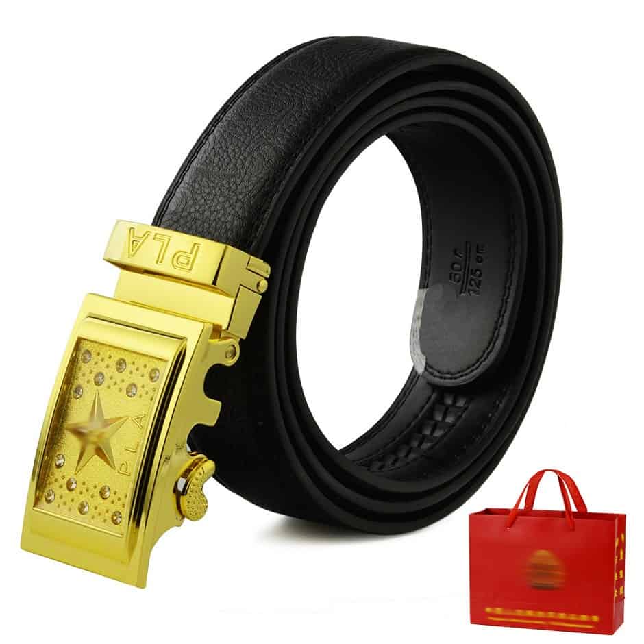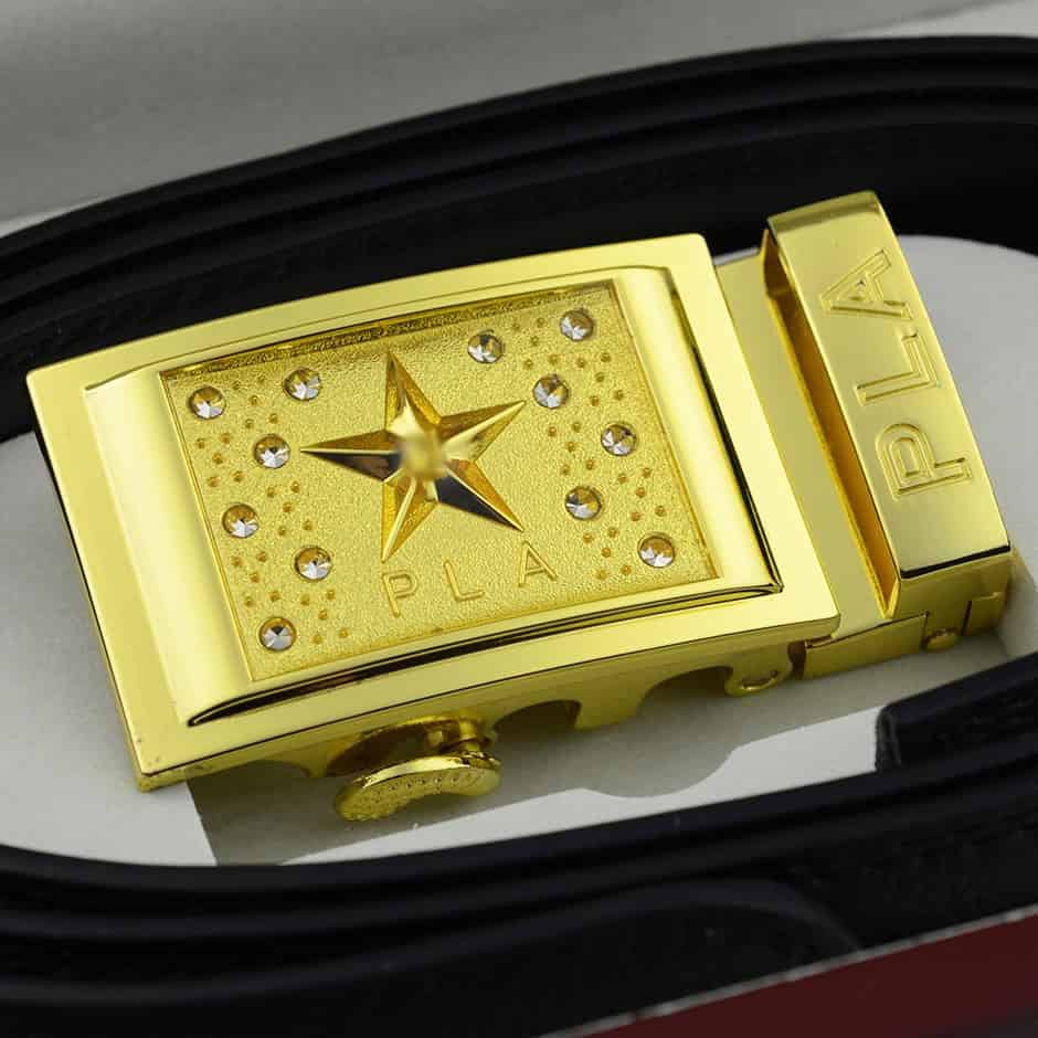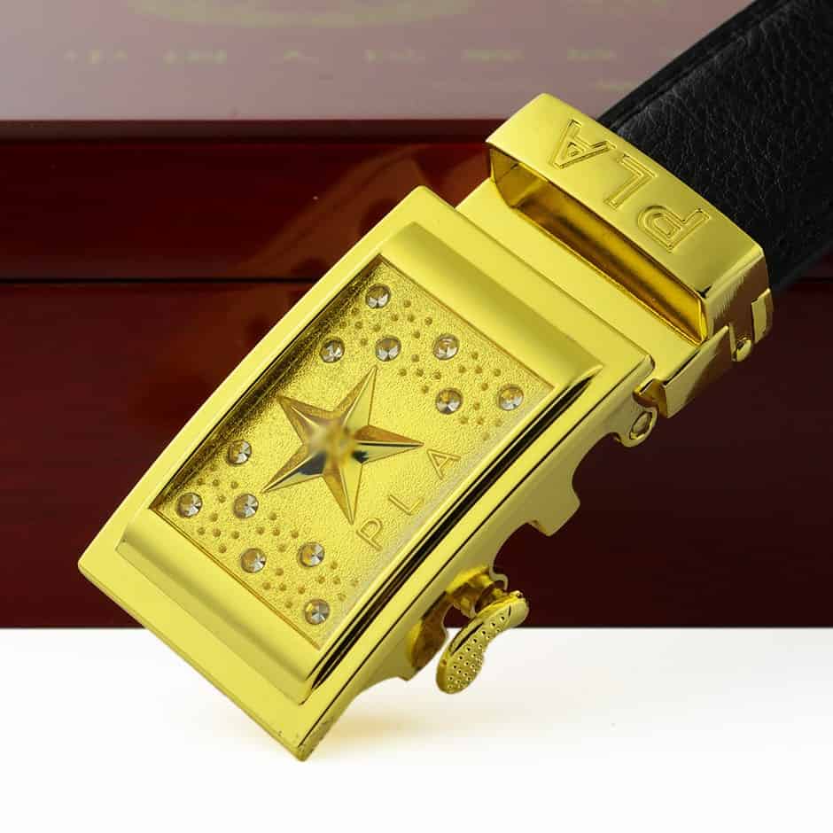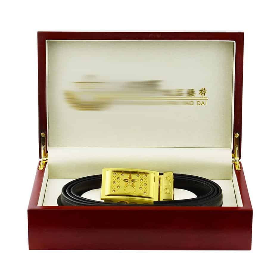 三星金头腰带,自动头功勋腰带,镀玫瑰金24K腰带礼盒
