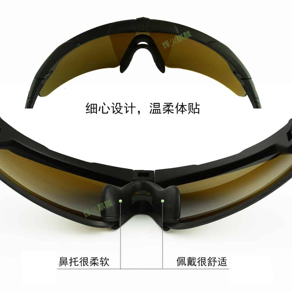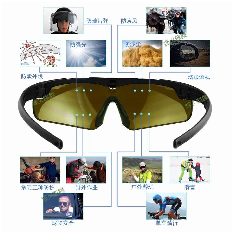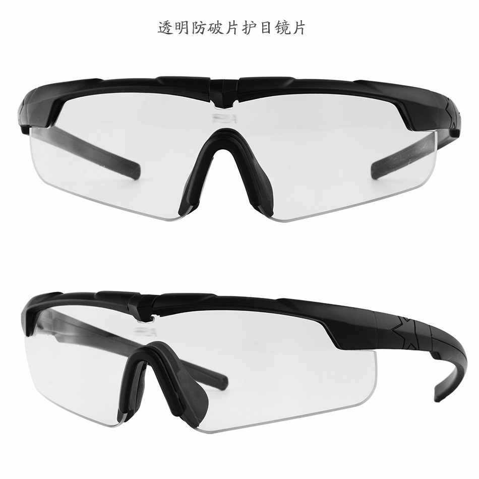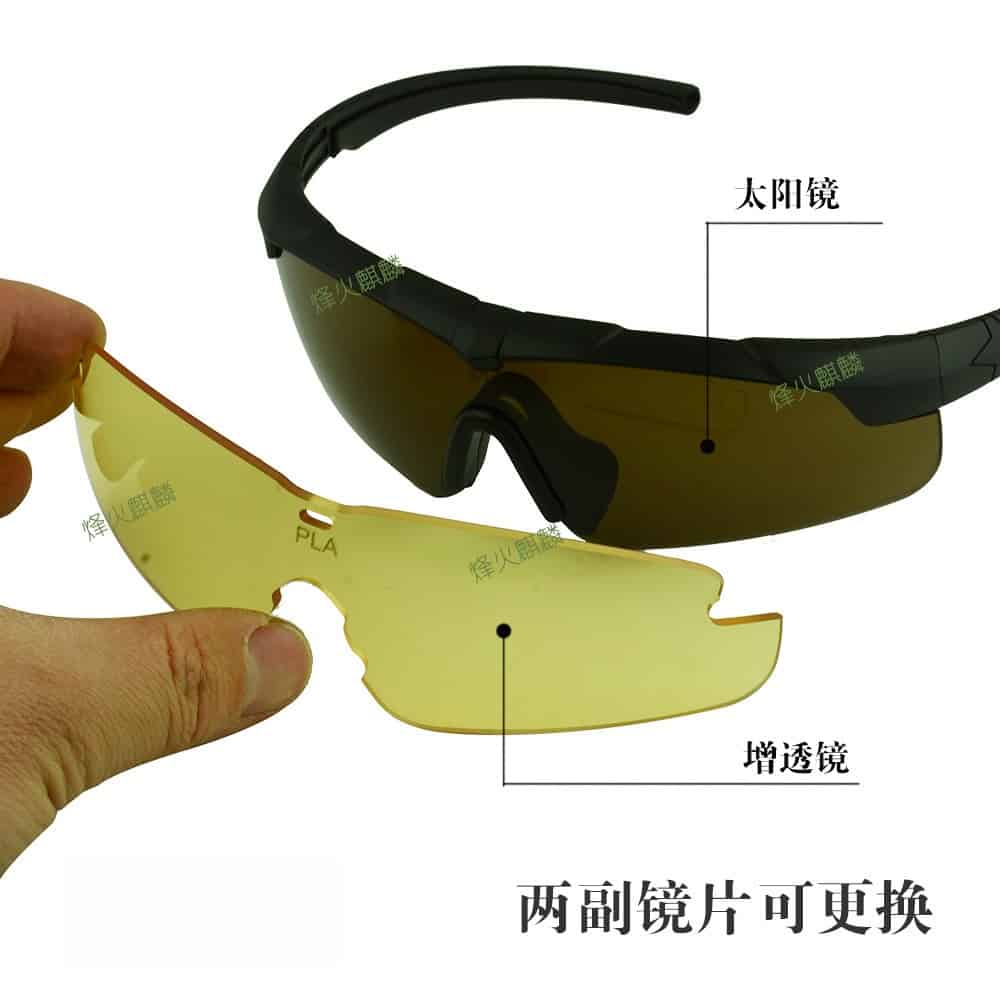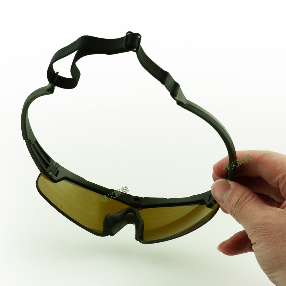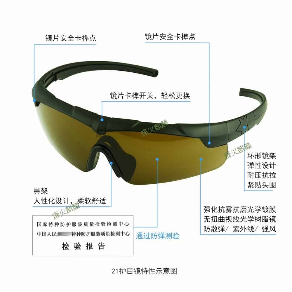 这是一款我国相关企业近期制造的新款战术护目镜,用于眼睛防护,可针对霰弹,破片,强光,疾风等状况。眼镜片采用强化有机树脂光学镜片,兼顾了硬度和弹性,对眼睛的防护度可提高至少85%的损伤。本眼睛已经经过专业权威的防弹防护测试。