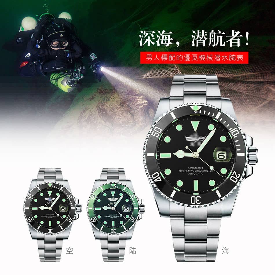 水鬼潜水表,第三代机械潜水表,机械全自动手表男士腕表