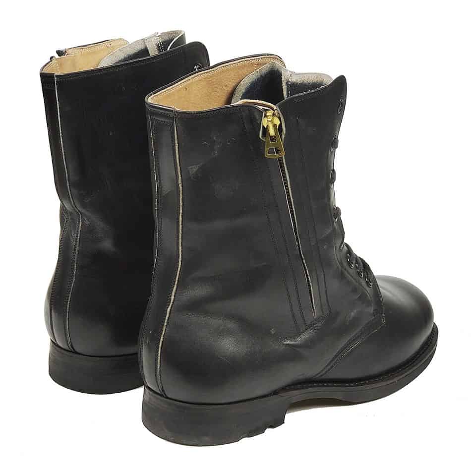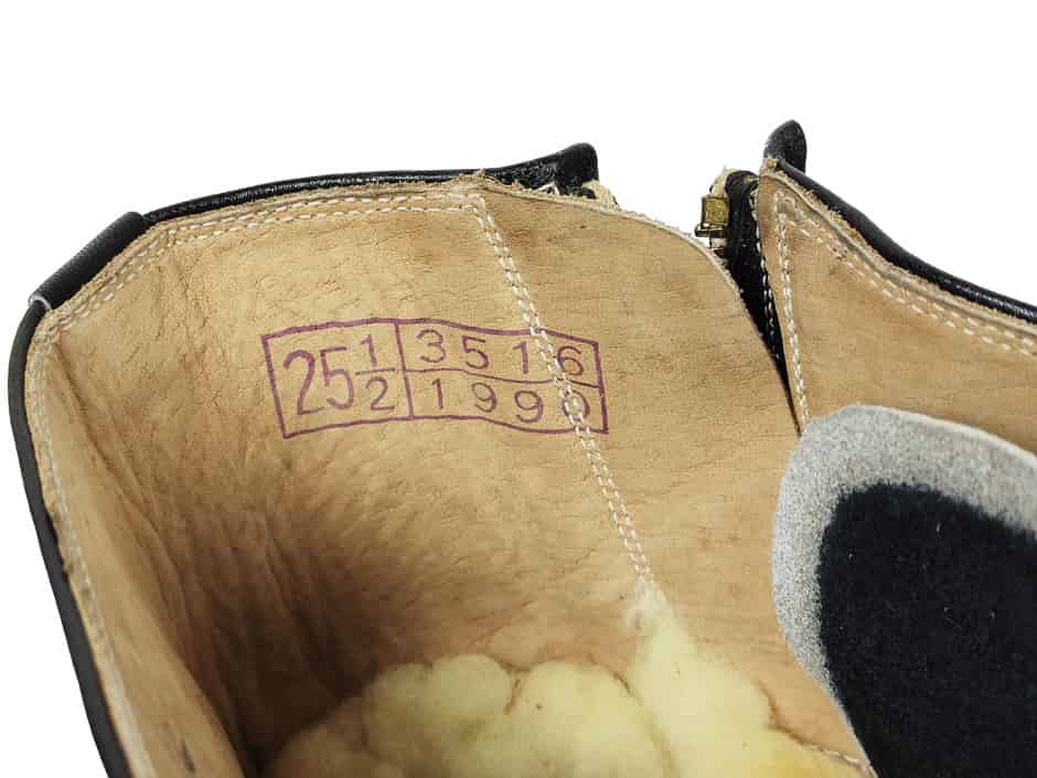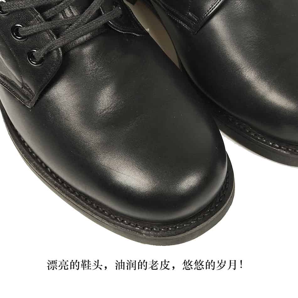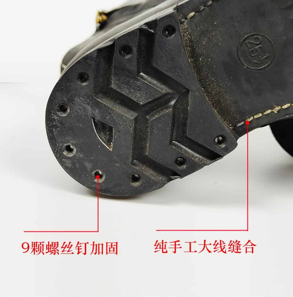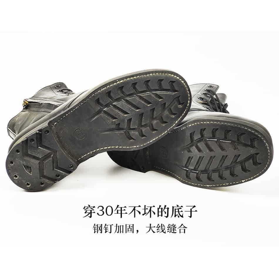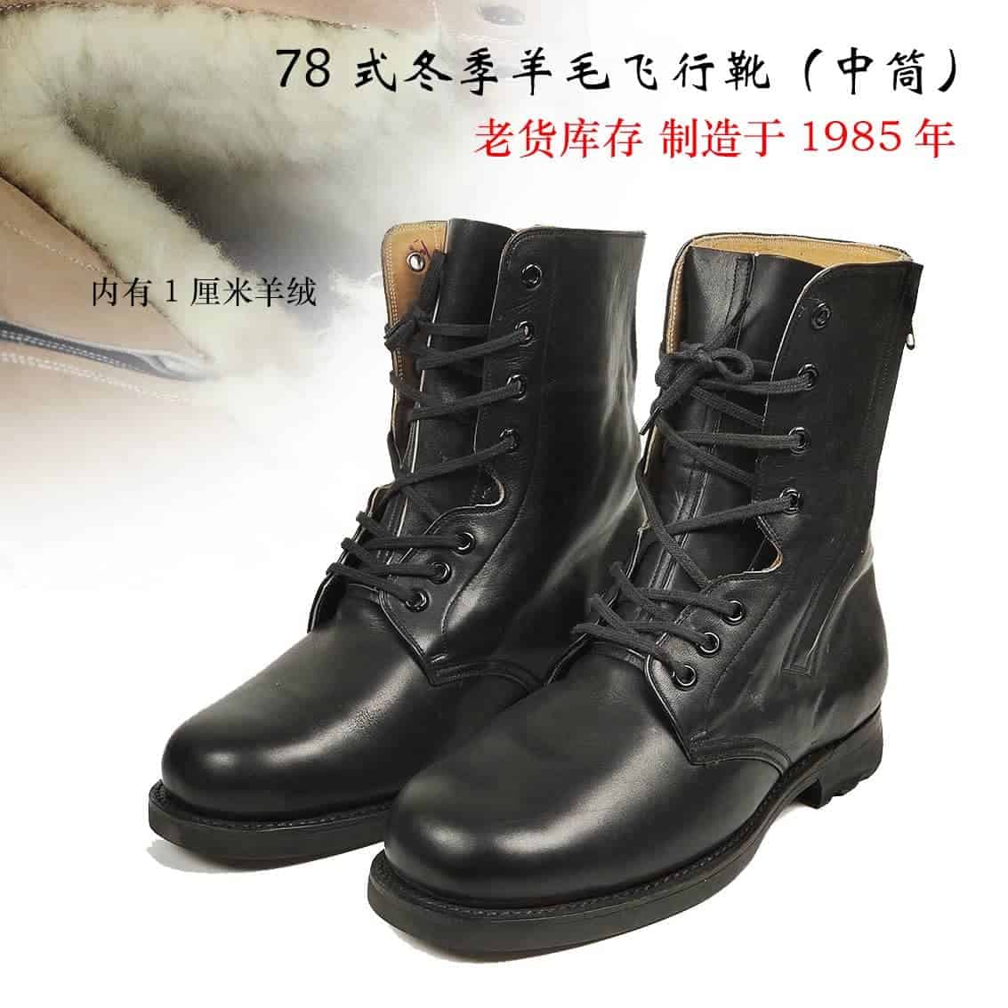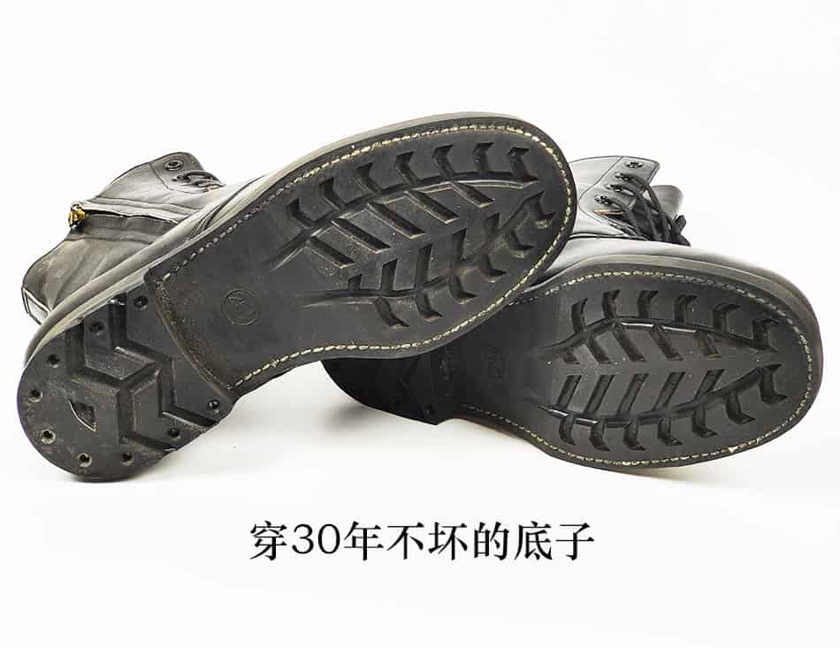 本店展示这双靴子是1990年由3516工厂制造,品名为78式耐高寒冬季飞行靴。很多人喜欢这种老靴子,因为结实耐穿,做工踏实,再者因为皮料等用料非常厚道。而且,从款式来看,很经典,即使过了30年,穿在脚上,依然时尚的很,不仅不落伍,而且还有赶超潮流的那种风格。