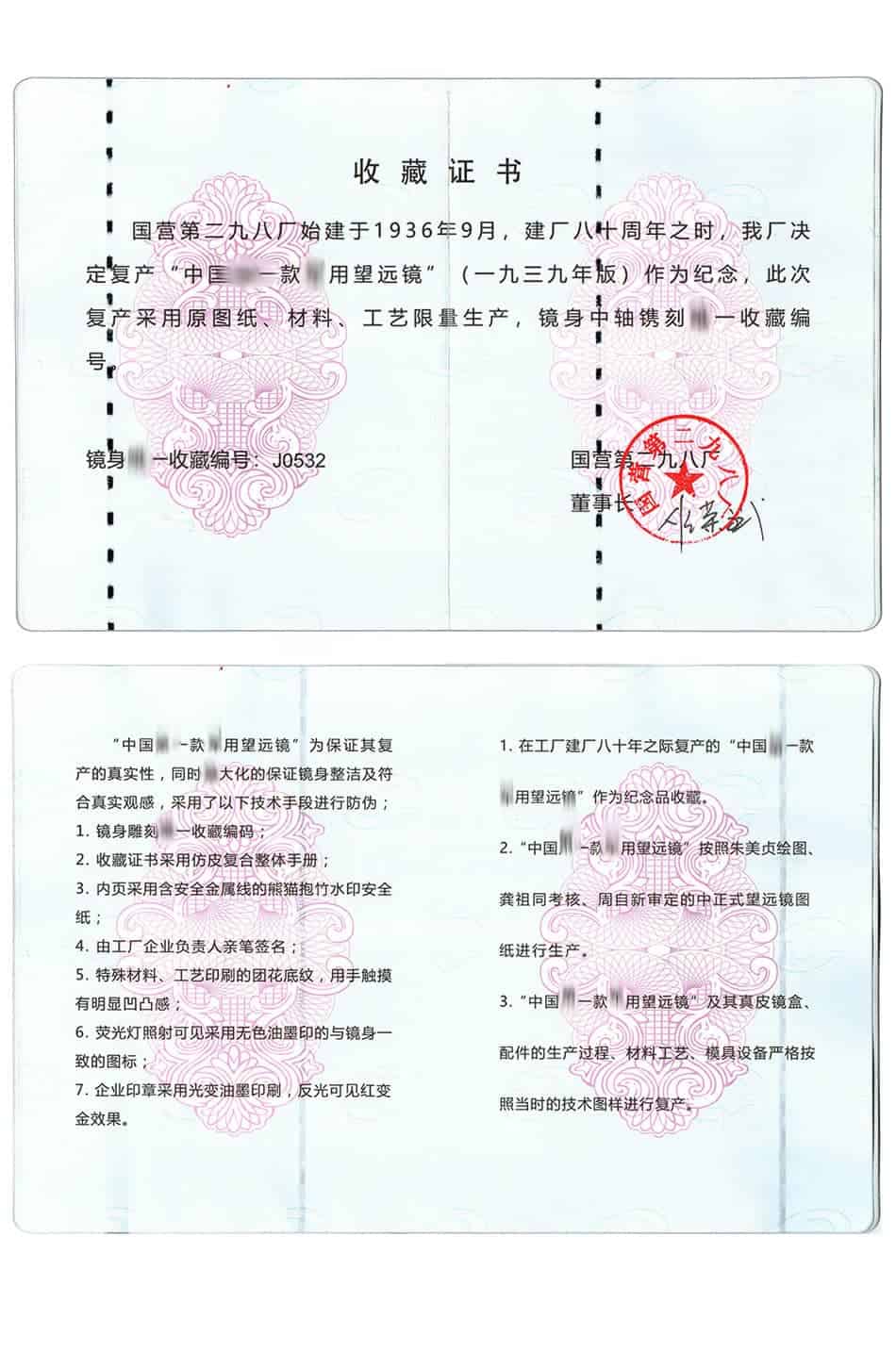 中正式望远镜纪念收藏版,6×30,夜视集团298厂制造