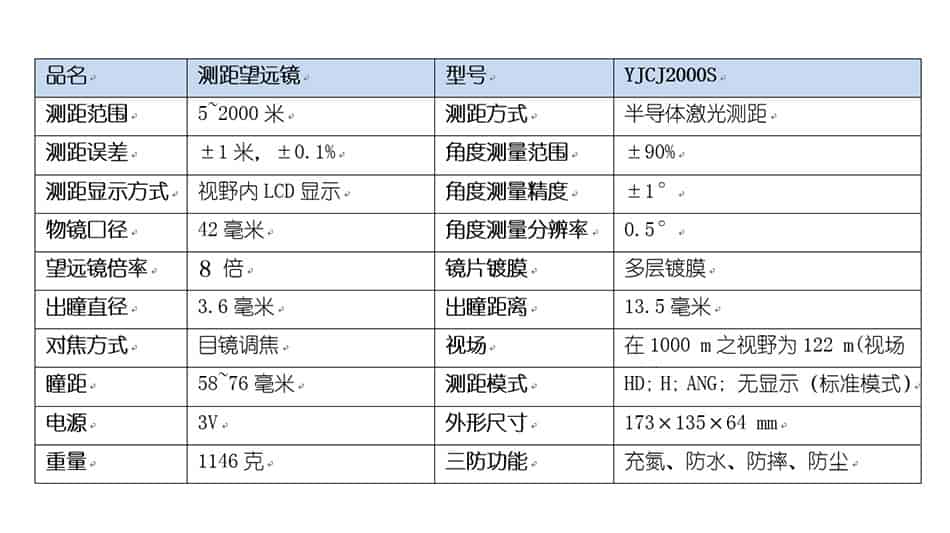 YJCJ2000S激光测距仪,激光测距望远镜,双筒高清ED,专柜正品